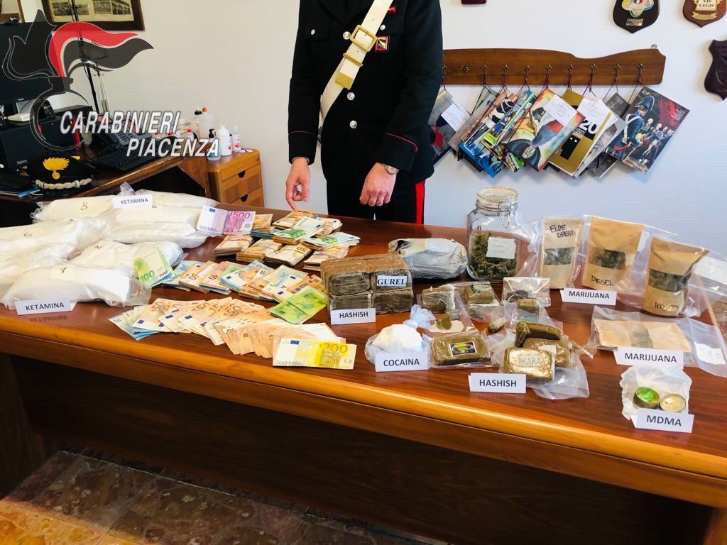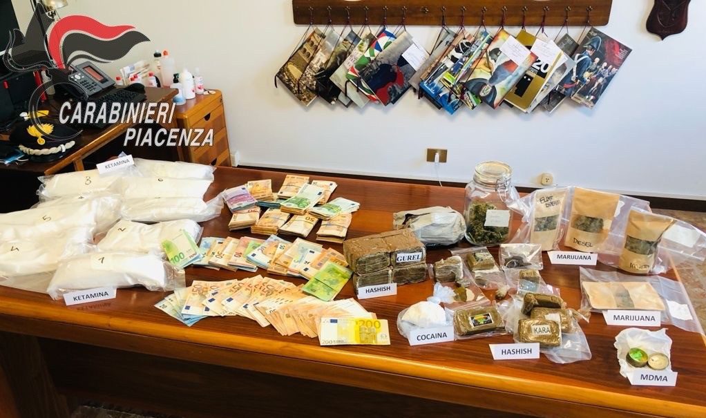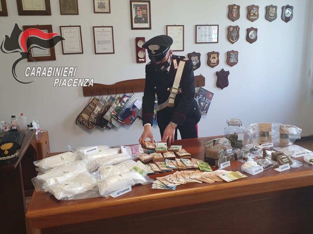 Con stupore, i carabinieri dell’Aliquota Operativa che hanno eseguito le perquisizioni, hanno scoperto un vero e proprio supermarket della droga. Occultati in un mobile della camera da letto, nei comodini, in alcuni mobili della cucina e della sala sono stati trovati 9 chili di ketamina, 100 gr. di cocaina, 1 chilo e 700 grammi di hashish, 150 grammi di marijuana e 4 gr di MDMA. Inoltre, in una scatola di scarpe, sono stati trovati 50.150 euro suddivisi in mazzette da 5.000 euro. Non mancavano nemmeno i bilancini di precisione e materiale idoneo al confezionamento di stupefacenti.