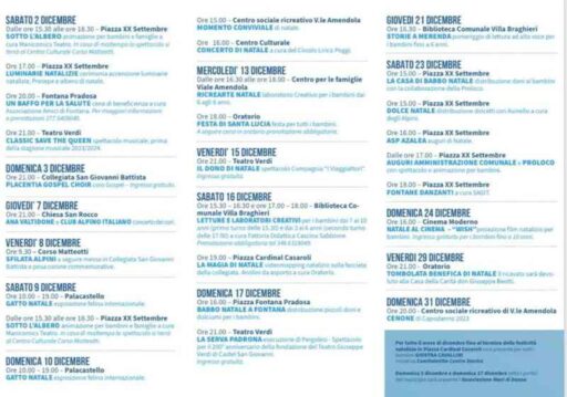 “Il Natale è in assoluto la festa dei più piccoli – anticipa Lucia Fontana – segnalo per questo la meravigliosa giostra con i cavallini nella piazza della nostra collegiata e poi ancora laboratori creativi, l’appuntamento il 13 dicembre con Santa Lucia, il 17 Babbo Natale a Fontana Pradosa, il 23 la casa di Babbo Natale in piazza XX settembre e sono solo alcuni appuntamenti”.