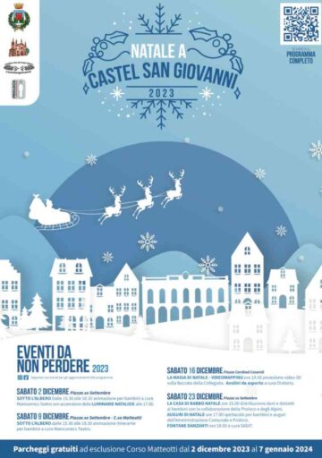 “Venerdì 8 dicembre all’interno degli appuntamenti del Natale – specifica il Sindaco di Castel San Giovanni – ci sarà la festa sezionale del Gruppo degli Alpini di Castel San Giovanni. Evento che si celebra ogni anno proprio in questa giornata”.