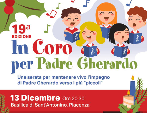 In coro per Padre Gherardo, torna venerdì 13 dicembre alle 20,30 e per la prima volta presso la Basilica di Sant’Antonino il concerto che rappresenta l’occasione per mantenere viva l’opera di Padre Gherardo per la Casa del Fanciullo. La serata prevede l’esibizione dei Piccoli Cantori, delle Voci Bianche diretti da Giorgia Maggi e dello Spirit Gospel Choir diretto da Andrea Zermani e la consegna del “Fanciullino d’oro” riconoscimento assegnato che si impegnano a raggiungere gli stessi obiettivi di Padre Gherardo.