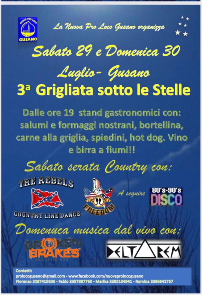 Grigliata sotto le stelle, il 29 e 30 luglio a Gusano di Gropparello. All’interno della manifestazione sarà possibile trovare stand gastronomici son le prelibatezze tipiche del territorio e tanta musica.