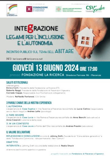 Progetto Integrazione” della Fondazione La Ricerca: un intervento di co-housing rivolto a persone adulte. L’argomento è stato trattato a Volontariato in Onda il programma realizzato da Radio Sound in collaborazione con Csv Emilia, Centro Servizi per il Volontariato di Piacenza.