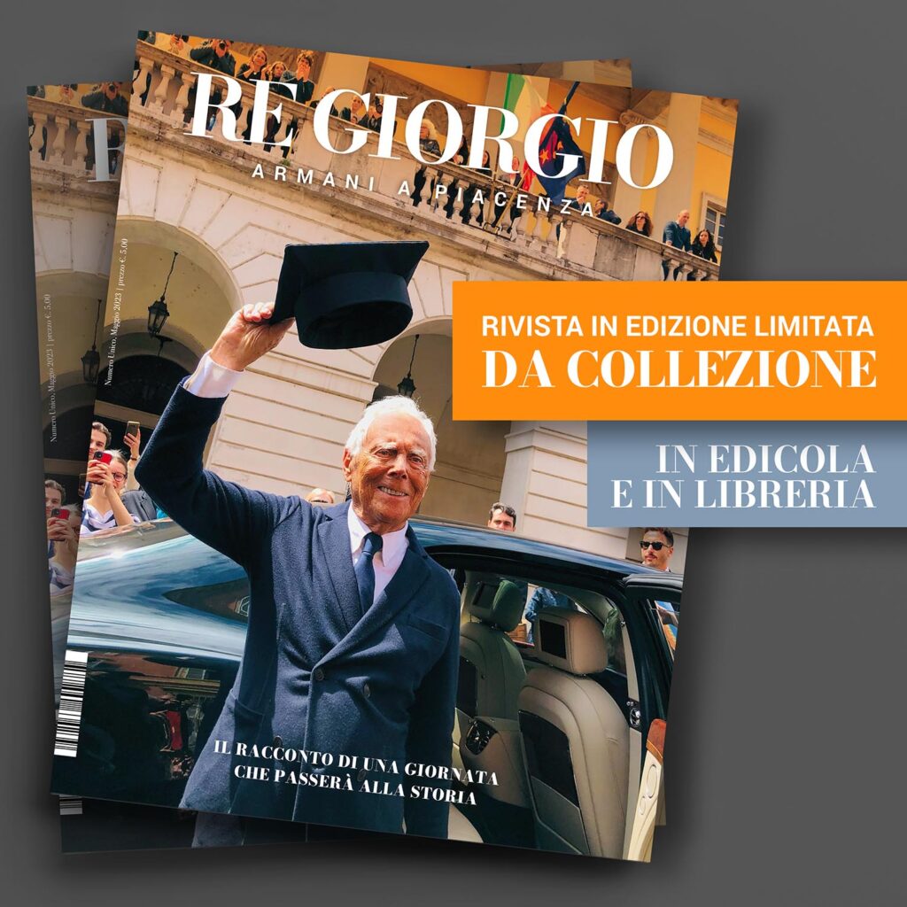 Per ricordare questa giornata davvero unica nella storia di Piacenza e onorare il genio creativo di Giorgio Armani ricordando il suo straordinario percorso nel mondo della moda, Il Mio Giornale.net, Radio Sound, Piacenza Diario, Piacenza24 e PiacenzaOnline hanno realizzato “Re Giorgio” una rivista che mira ad offrire un’esperienza esclusiva ed immersiva a chiunque desideri vivere o rivivere i momenti salienti della cerimonia. Un vero e proprio gioiello editoriale edito da Blacklemon e realizzato con dedizione estetica per essere un degno omaggio al talento senza confini di uno dei più grandi stilisti ed imprenditori del nostro tempo.