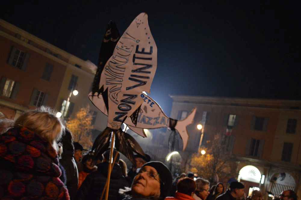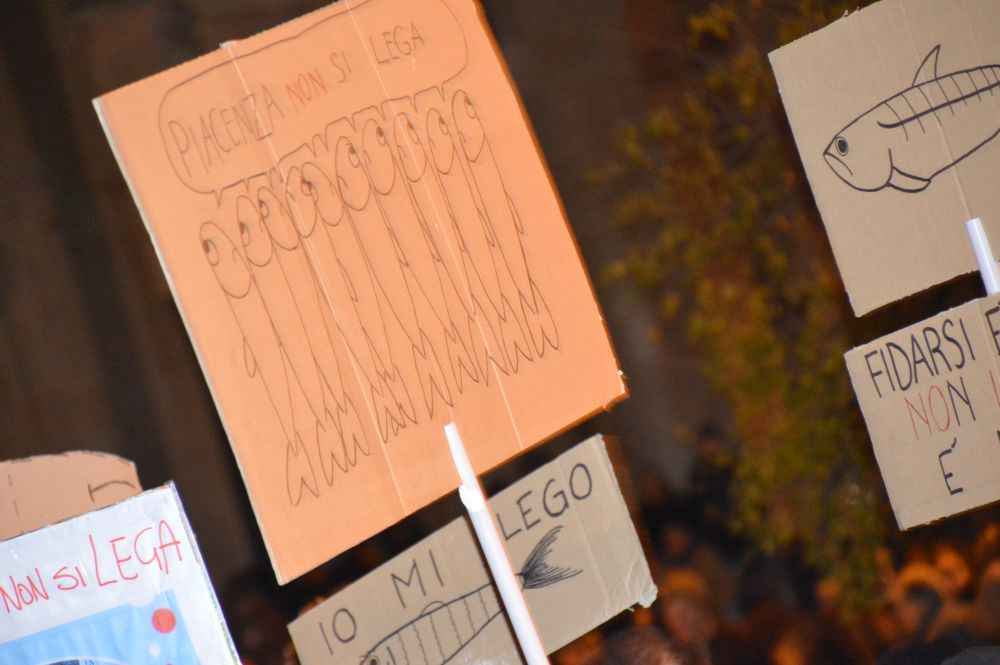 La piazza intona a gran voce Bella Ciao, anche se in origine il movimento aveva scelto come inno “Com’è profondo il mare” di Lucio Dalla, in onore della città di Bologna: “Tutto quello che esce da una piazza positiva deve essere accettato e da comprendere”.
