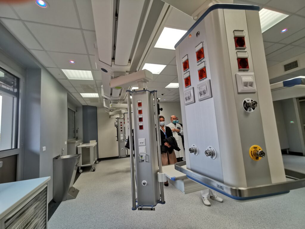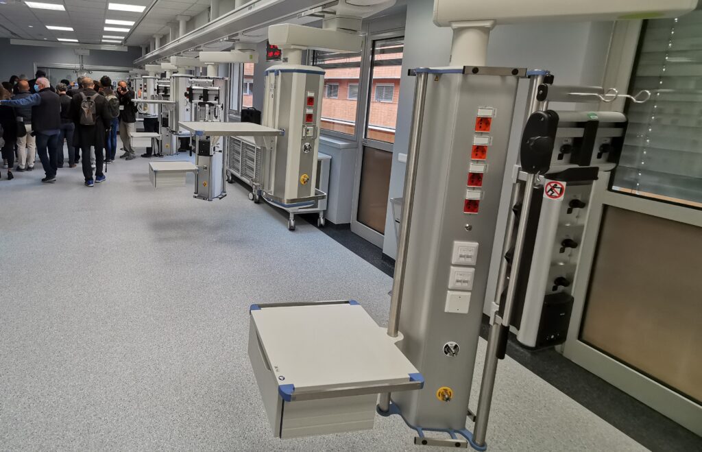 Nel nuovo reparto di Pneumologia UTIR, si sono così creati 18 posti letto: 6 (+1 aggiuntivo in emergenza) di Terapia Intensiva Respiratoria (UTIR); 8 in area semintensiva; 3 per acuti nella nuova Medicina di Area Critica sono allocati 13 posti letto: 11 in area semintensiva, 2 per acuti.