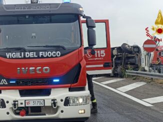 Tir si ribalta in autostrada, conducente incastrato nell’abitacolo e liberato dai vigili del fuoco – FOTO