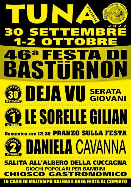 A Tuna di Gazzola dal 30 Settembre al 2 Ottobre si tiene la 46^ Festa di Basturnon. Tutte le sere stand gastronomici e musica, mentre domenica sono in programma giochi e l’albero della cuccagna.