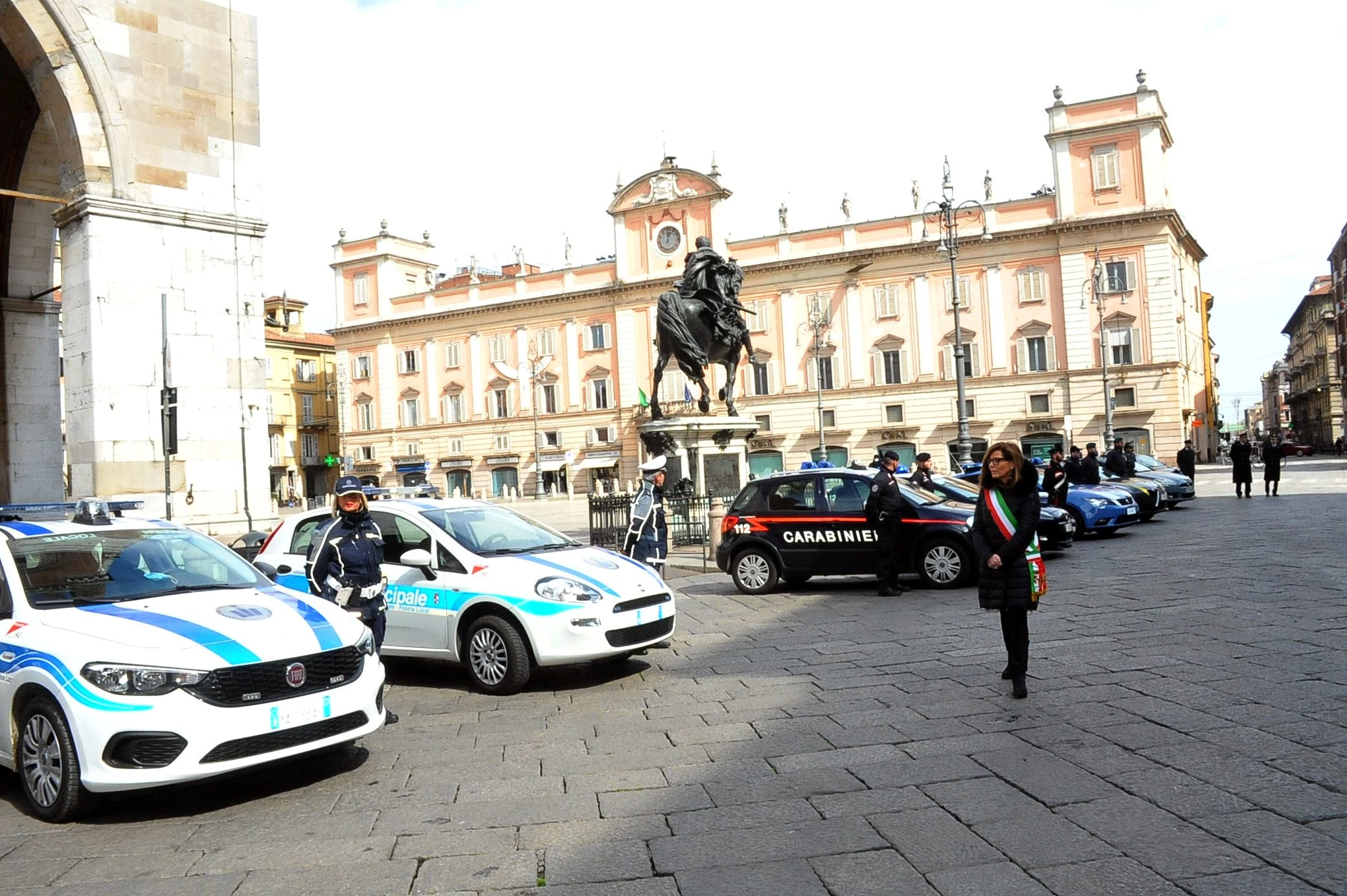 Un momento toccante: il sindaco Patrizia Barbieri si è recata di fronte al Municipio dove erano allestiti i mezzi delle forze dell’ordine.