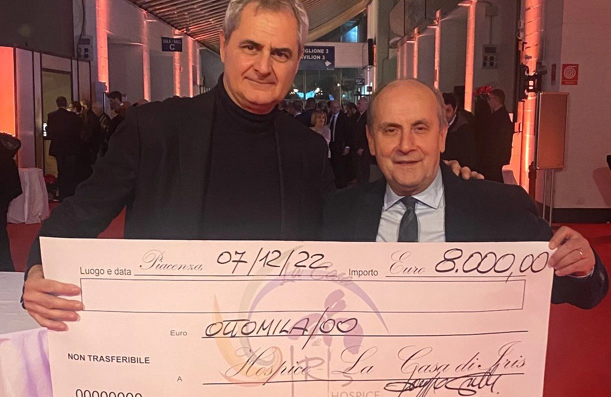 Un dono natalizio con un po’ d’anticipo sul calendario quello consegnato da Piacenza Expo all’Hospice “La Casa di Iris”. Un dono rappresentato da un assegno da ottomila euro consegnato dal’Amministratore unico della società fieristica piacentina, Giuseppe Cavalli, al Presidente della Fondazione “La Casa di Iris”, Sergio Fuochi, al termine della grande cena benefica – ribattezzata “Iris, il fiore di Natale” – svoltasi nei giorni scorsi nel Foyer del quartiere fieristico di Le Mose.
