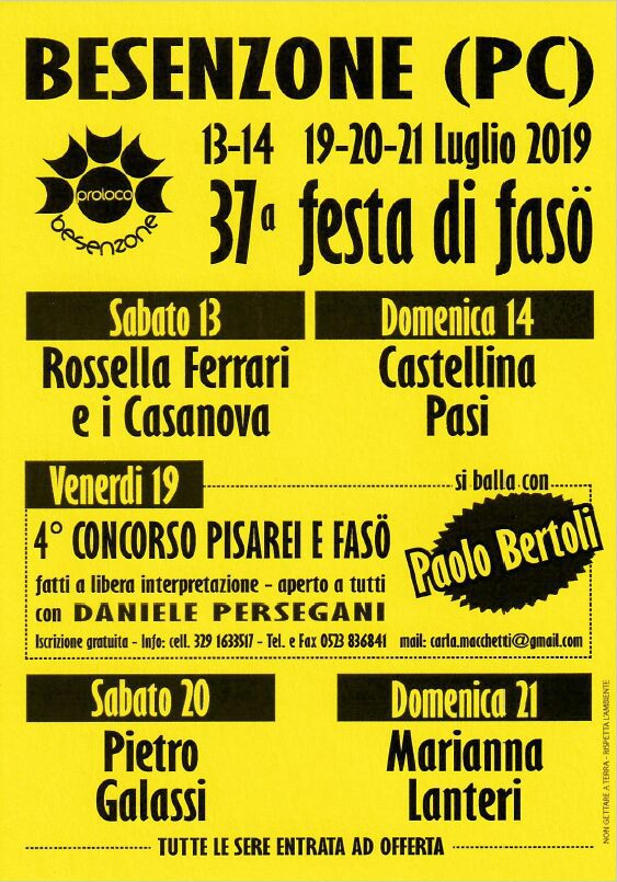 37^ Festa Di Fasò a Besenzone, il programma