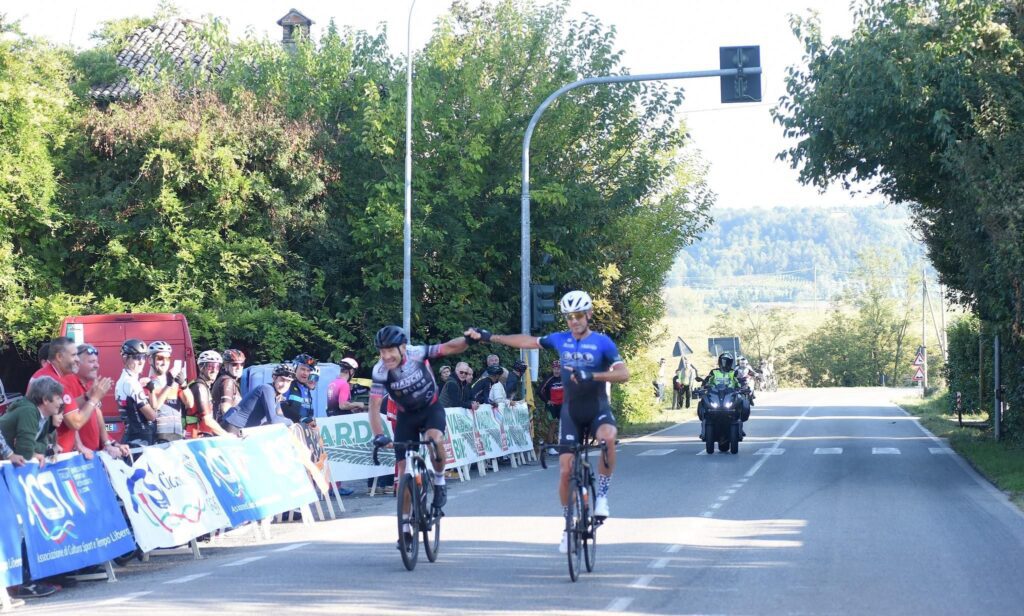 Nella Gara2, dedicata alle categorie GENT/SUPERGENT, l’arrivo è stato da libro cuore. Una parata, mano nella mano, per Ettore Manenti Team Bianchi Zanzariere e Massimo Picco del Veloclub Pontenure (paese in provincia di Piacenza). Alle loro spalle, Stefano Consigli del Bike Soliera ha vinto la volata dei battuti, mentre il traguardo volante se lo è aggiudicato Filippo Beoni del Team Stocchetti. Velocità media della corsa: 41km/h.