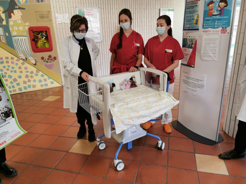 Il progetto di quest’anno prevede l’acquisto di culle neonatali Next To Me, lettini specificatamente pensati per la permanenza del neonato nella stanza della mamma durante le 24 ore della giornata (rooming-in) con la possibilità di dormire insieme (co-sleeping).