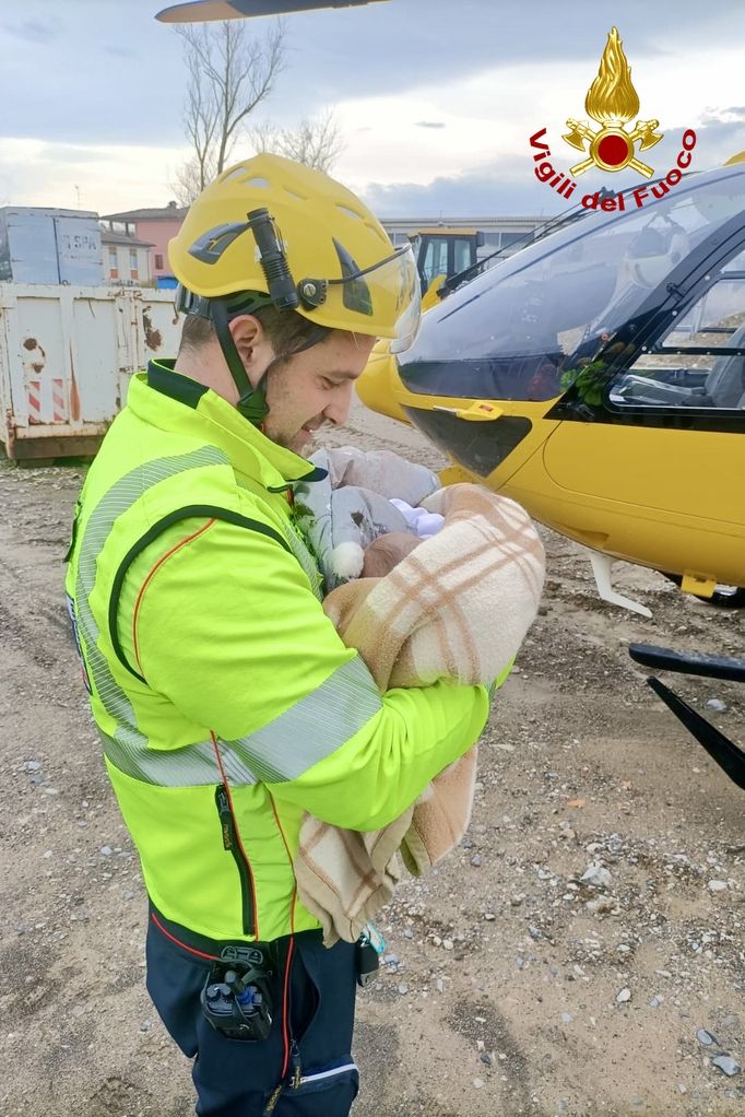 Dopo averlo estratto in sicurezza lo hanno affidato alle cure del 118 che, come si vede dalla foto, oltre a medicarlo hanno dovuto e voluto tranquillizzarlo prima di lasciarlo decollare in vista dell’ospedale Maggiore di Parma.