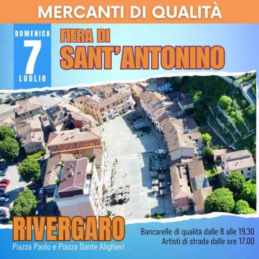 A Rivergaro il 7 luglio si festeggia Sant’Antonino con i Mercanti di Qualità. Domenica in piazza Dante e Piazza Paolo, durante la Fiera, è in programma dalle 8 alle 19 un grande appuntamento con lo shopping estivo caratterizzato dai grandi saldi.