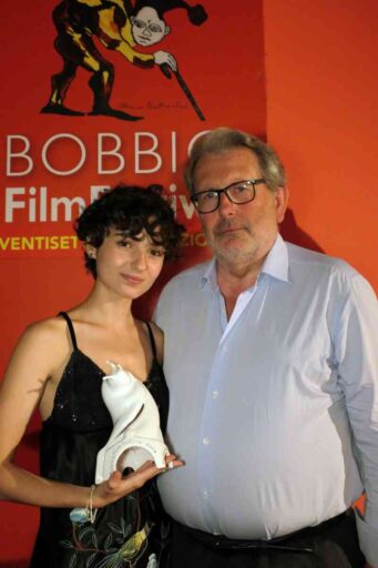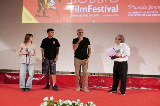 La serata è proseguita con la cerimonia di consegna dei premi. Enrico Magrelli, che per tutte le sere di Festival ha animato e guidato i dibattiti post proiezione, ha portato i saluti e i ringraziamenti di Fondazione Fare Cinema – presieduta da Marco Bellocchio e diretta da Paola Pedrazzini, seduti in prima fila – agli enti che rendono possibile il Festival (Ministero della Cultura, Regione Emilia-Romagna, il Comune di Bobbio nella persona del Sindaco Roberto Pasquali e soprattutto  la Fondazione di Piacenza e Vigevano con il suo presidente Roberto Reggi, il cda e la commissione cultura) il Quotidiano “Libertà” e la sua editrice Donatella Ronconi, oltre che naturalmente tutto lo staff di Fondazione Fare Cinema (i ragazzi e ragazze “con la maglietta rossa” che gli spettatori trovavano al chiostro ogni sera ad accoglierli).