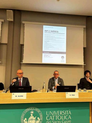 Il presidente dell’INPS Gabriele Fava è intervenuto nel campus di Piacenza dell’Università Cattolica, in occasione dell’incontro INPS E IMPRESE: NUOVI SERVIZI E FORME DI COLLABORAZIONE. Il Seminario, che ha visto un’attenta partecipazione degli studenti della facoltà di Economia e Giurisprudenza, si è concluso con una Tavola rotonda che ha consentito un confronto diretto tra il sistema produttivo piacentino e l’Istituto Nazionale di Previdenza sociale, grazie alla presenza dei rappresentanti delle Associazioni imprenditoriali e del mondo delle professioni (Avvocati, Dottori commercialisti, Consulenti del lavoro).
