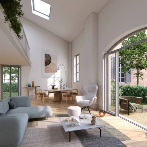 Il cuore dell’intervento è la creazione di 34 residenze: bilocali, trilocali, quadrilocali, loft, attici con travi e capriate a vista, e piccole villette urbane nei corpi separati.