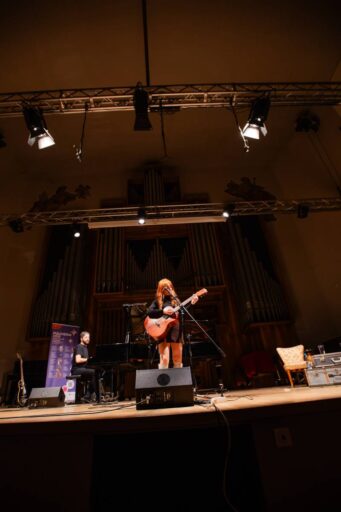 A introdurre il momento centrale è stata Serena Solimeo, speaker di Radio Sound, che ha presentato la cantautrice Maria Antonietta insieme al musicista Daniele Rossi, impegnato al pianoforte e alla chitarra.