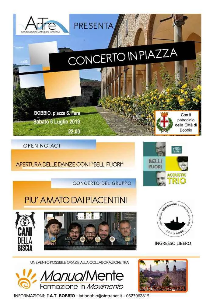 Sabato 6 luglio grande concerto a Bobbio in Piazza Santa Fara con i Cani della Biscia e i Belli Fuori. L’evento avrà inizio alle ore 22.