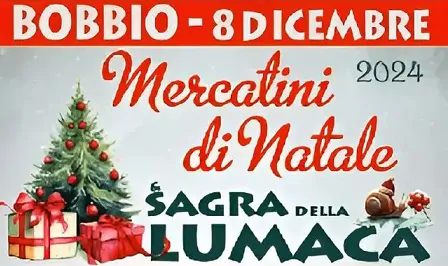 Sagra della lumaca trentacinquesima edizione e mercatino di Natale, domenica 8 dicembre a partire dalle 8,30 nel centro di Bobbio è festa grande. Dal mattino tante idee per Natale e alle 12 la degustazione delle lumache alla bobbiese, preparate da “Ra Familia Bubieisa” secondo la ricetta de.co. Nel pomeriggio il laboratorio degli Elfi per i più piccini e in piazza i regali realizzati dai ragazzi dei gruppi “dopocresima” il cui ricavato sosterrà le attività dell’oratorio.
