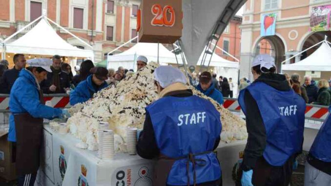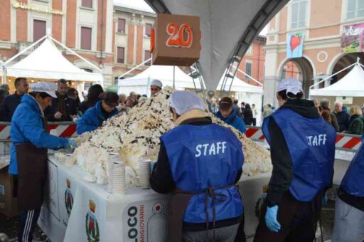 Come sempre l’attrazione della due giorni sono stati i dolci giganti preparati dai volontari della Pro Loco (con il cioccolato di Bardini cioccolaterie) che hanno richiamato tanti buongustai con numeri – come sempre – da capogiro: si parla infatti di un consuntivo con 8 quintali di salame di cioccolato (distribuito sabato e domenica), 5.500 porzioni di Torta Rita (sabato e domenica), 5.500 porzioni di profiterole (solo sabato) e 4.000 porzioni di meringhe del Monte Bianco (solo domenica). Senza contare il cioccolato e i dolci preparati dai maestri cioccolatai provenienti da varie zone d’Italia.