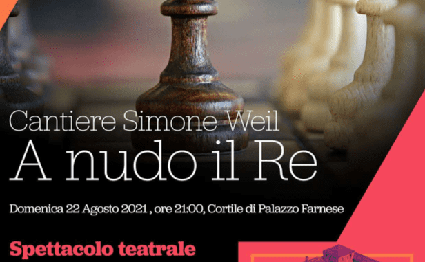 Prosegue a Piacenza Estate Farnese, la rassegna estiva di spettacoli, concerti, danza, prosa, lirica e teatro a Palazzo Farnese. Domenica 22 Agosto alle ore 21, nel cortile di Palazzo Farnese, il Cantiere Simone Weil presenta lo spettacolo teatrale “A nudo il Re”.