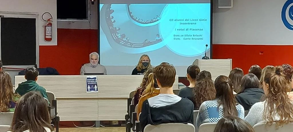 Comprendere il senso e le caratteristiche delle professioni legali, la specificità della funzione notarile, i percorsi di studio e le modalità di accesso: questi sono alcuni dei temi trattati dai notai Silvia Bricchi e Carlo Brunetti in un incontro, promosso dal Consiglio Notarile di Piacenza, con gli studenti del Liceo Melchiorre Gioia.