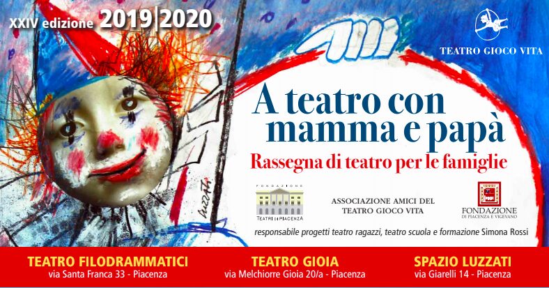 Importanti aggiornamenti a Piacenza sul calendario della Rassegna di teatro per le famiglie “A teatro con mamma e papà”, curata da Simona Rossi e organizzata da Teatro Gioco Vita, direzione artistica di Diego Maj, con Fondazione Teatri di Piacenza, la collaborazione dell’Associazione Amici del Teatro Gioco Vita e il sostegno della Fondazione di Piacenza e Vigevano