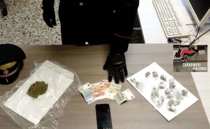 Nel corso della perquisizione personale i militari gli hanno in effetti rinvenuto addosso quaranta grammi di marijuana suddivisa in 18 dosi. Per il giovane sono dunque scattate le manette. Si trova ora agli arresti domiciliari, in attesa del rito direttissimo previsto dinanzi al Tribunale di Piacenza in mattinata odierna.