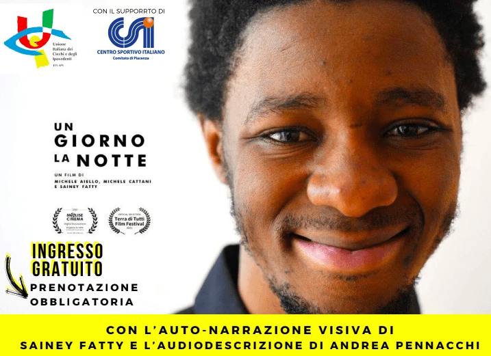 Giovedì 11 novembre 2021, alle ore 19:00, presso il cinema Politeama (sala RITZ) in Via San Siro 7 a Piacenza verrà proiettato con entrata gratuita il film dal titolo “Un Giorno La Notte” di Michele Aiello e Michele Cattani, con l’auto-narrazione visiva di Sainey Fatty e l’audiodescrizione di Andrea Pennacchi.