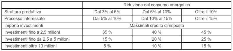 L’ammontare dell’agevolazione varia in relazione alla quota d’investimento e alla riduzione dei consumi: