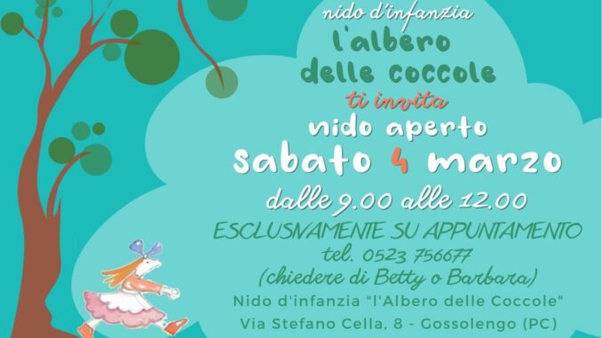 Il Comune informa altresì che in data SABATO 4 MARZO 2023 si svolgerà la giornata “NIDO APERTO” dalle ore 9 alle ore 12.