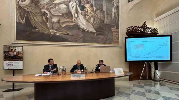Ha preso la parola il direttore generale della Banca Angelo Antoniazzi, che ha ricordato le tappe principali della carriera dell’autore: prime esperienze nel settore manifatturiero, poi l’ingresso nel mondo della finanza; è stato responsabile del settore previdenza e fondi pensione di Intesa San Paolo e dal 1995 al 2001 consigliere di amministrazione dell’Inps; per 15 anni docente nei migliori atenei della Lombardia e dal 2001 al 2006 sottosegretario al ministero del Welfare dei governi Berlusconi II e III, con delega alla Previdenza sociale, il prof. Brambilla dal 2018 al 2020 è stato consigliere economico della Presidenza del Consiglio e attualmente presiede il “Centro studi e ricerche itinerari previdenziali”.