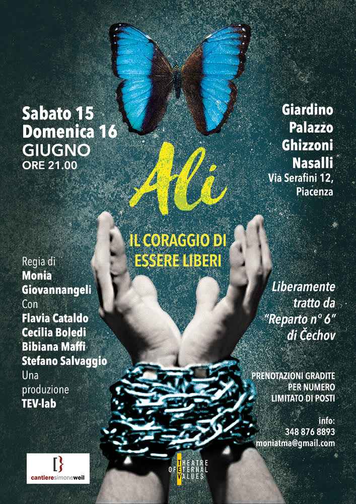 Ali Il coraggio di essere liberi, il 15 e 16 giugno nel giardino di Palazzo Ghizzoni Nasalli. Lo spettacolo inizia alle 21. Ingresso 10 Euro.
