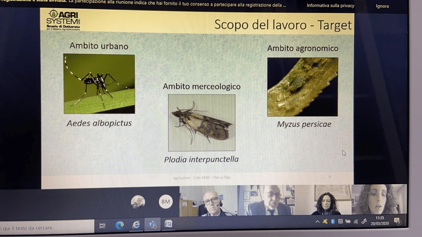 Si sono discusse le prime tesi di dottorato online dell’Università Cattolica. Sono quelle della scuola di dottorato per il Sistema agroalimentare (Agrisystem). Due i giovani dottori di ricerca coinvolti: Olga Chiesa, la cui tesi riguarda gli Utilizzi innovativi di molecole naturali o di sintesi per la lotta agli insetti infestanti, e Matteo Caruso, il cui lavoro di ricerca ha riguardato l’Ottimizzazione del processo produttivo degli acari della specie Dermatophagoides e dei loro allergeni maggiori. Relatore di entrambi è il professor Emanuele Mazzoni.