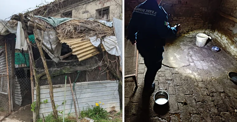 Ma sorte forse peggiore toccava alle fattrici, tre cagnoline di razza lagotto detenute in una ex stalla, ove per accedere si passava in diverse stanze buie e piene di detriti, il luogo di detenzione pregino di un odore nauseabondo dato dalla sporcizia e l’inesistente areazione, una rete metallica come unico giaciglio, fra escrementi, umidità e muffa. Il controllo è poi proseguito con l’intervento dei Carabinieri chiamati dalle stesse Guardie in quanto l’allevatore ha dato in escandescenza risultando impossibile proseguire l’azione in sicurezza.
