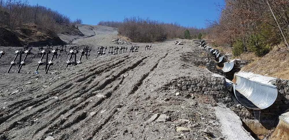 Accertata l’importante funzione di “cassa di espansione” esercitata dal piede di frana, si è intervenuto per conservare anche in futuro tale la funzione di “laminazione”. Nell’area del dissesto sono stati collocati 30 triplette composte ciascuno da tre micropali legati tra di loro, profonde fino a 15 metri. Una tecnica inedita, una novità sul panorama nazionale. Un sistema a maglie larghe costituito da tanti piccoli ostacoli per infrangere eventuali colate di fango, in caso di piogge intense. Il tutto trattenendone una parte nella discesa ed evitando il rischio di chiusura del Nure. Il progetto si completa con le opere di sistemazione della rete dei canali. Anche il ripristino del reticolo idraulico e la piantumazione di alberature per rinaturalizzare il versante. Nei prossimi mesi si svolgerà un monitoraggio in continuo per verificare costantemente lo stato del dissesto.