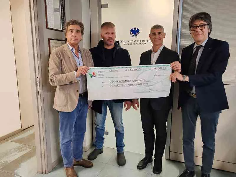 Nei giorni scorsi, presso la sede di Confcommercio Cesenate, si è svolta una breve cerimonia durante la quale sono stati ufficialmente consegnati due assegni di uguale importo. Della delegazione piacentina facevano parte Raffaele Chiappa, presidente di Confcommercio Piacenza, Adriano Anselmi, presidente provinciale di FIVA e Gian Luca Barbieri, direttore di Confcommercio Piacenza.