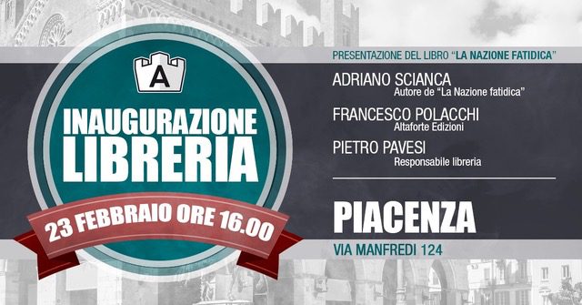 É in via Manfredi 124, il primo punto vendita italiano del marchio editoriale sovranista Altaforte Edizioni. Il taglio del nastro, in programma per sabato prossimo (23 febbraio) alle 16, vedrà la partecipazione dell’editore Francesco Polacchi e del responsabile piacentino Pietro Pavesi. Con loro anche Adriano Scianca, direttore del periodico “Il Primato Nazionale” e autore per Altaforte de “La Nazione Fatidica – Elogio politico e metafisico dell’Italia”.