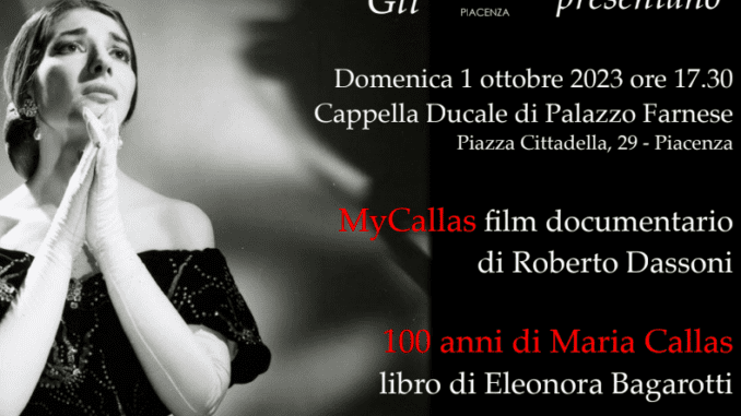 Riprendono, dopo la pausa estiva, il 1 ottobre alle ore 17 30 presso la Cappella Ducale a Palazzo Farnese, gli appuntamenti musicali e gli approfondimenti degli AMICI DELLA LIRICA. Per celebrare i 100 anni dalla nascita della “Divina” verrà proiettato il docufilm “MYCALLAS”, con la regia di ROBERTO DASSONI, aiuto regia AUGUSTA GRECCHI e la colonna sonora di GIAN FRANCESCO AMOROSO, che prende spunto dal libro di ELEONORA BAGAROTTI “100 anni di Maria Callas nei ricordi di chi l’ha conosciuta”. Gli autori saranno in conversazione con ILARIA NOTARI.