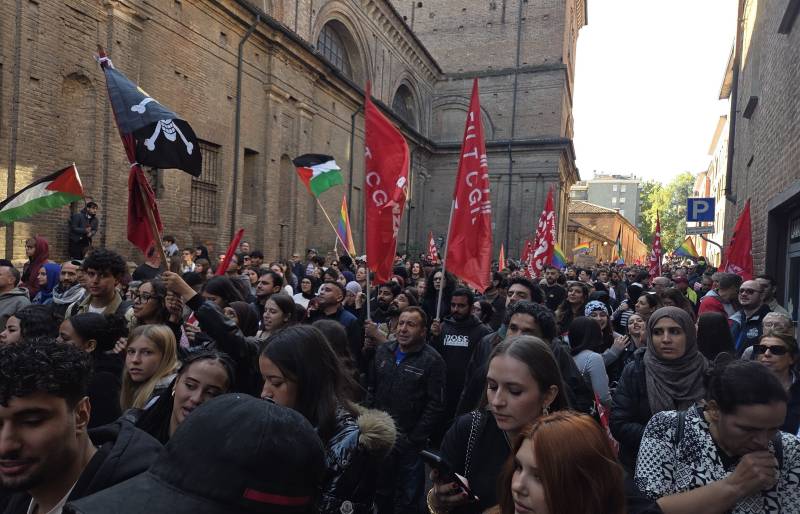 Contestualmente al corteo è in corso lo sciopero generale indetto dalla Cgil. Al corteo era presente il segretario provinciale, Ivo Bussacchini: “Lo sciopero di oggi nasce per condividere le difficoltà che ha il popolo palestinese a cercare di sopravvivere e a chiedere giustamente uno Stato. Oggi il mondo del lavoro in Italia, in Piacenza con gli studenti, si ferma per chiedere stop al genocidio, apertura immediata dei corridoi umanitari, basta 20.000 morti, bambini, civili e donne, bisogna immediatamente intervenire. La Global Sumud Flotilla è stata una grande esperienza e tra l’altro riparte anche dalla Turchia con altre 45 barche. In modo pacifico è stata ingiustamente fermata e arrestata. Il mondo del lavoro è vicino ai palestinesi insieme agli studenti a Piacenza”.
