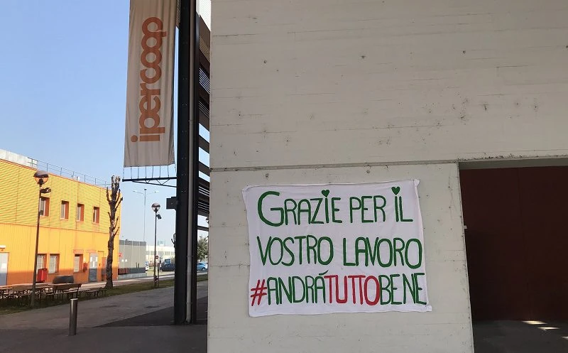 “Stamattina abbiamo trovato questo cartello attaccato davanti all’ingresso principale del Centro Commerciale: “Grazie per il vostro lavoro #andratuttobene”. Oltre ad averci commosso ci anche fatto piacere sapere che è apprezzato il lavoro e i sacrifici che i nostri collaboratori stanno facendo all’interno del Centro (negli esercizi commerciali che sono rimasti aperti come da indicazioni ministeriali)”.