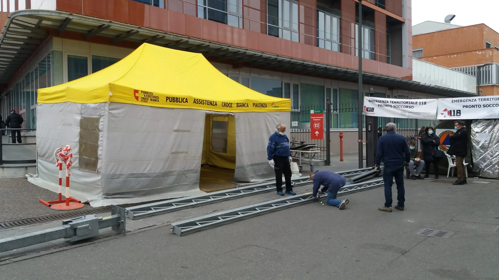 In campo anche la Croce Rossa che ha montato strutture simili davanti agli ospedali di Fiorenzuola e Castel San Giovanni. “Siamo stati contattati da Ausl e Protezione Civile – spiega il presidente provinciale Alessandro Guidotti – sono pronte a ricevere strumentazione e personale dell’Ausl”.