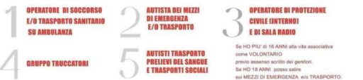 “Coloro che desiderano candidarsi debbono aver compiuto 16 anni, per i minori serve l’autorizzazione dei genitori, sottolineo – ancora Rebecchi – fino al compimento del 18° anno di età non è prevista attività a bordo dei mezzi, è un’attività di volontariato che deve piacere. In base a tipo di percorso che si sceglie viene richiesto un certificato di idoneità sanitaria, per il resto bisogna partecipare al corso avere tempo e al resto penseranno i nostri tutor”.