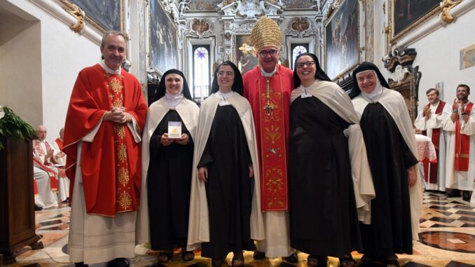 Al termine dell’omelia il Vescovo ha sottolineato il significato della consegna del Premio Antonino d’Oro 2023: la comunità monastica della Carmelitane è a servizio, così come l’altra comunità monastica benedettina, del cuore di ogni esistenza: “È il richiamo forte, nel «già» del tempo in cui viviamo, di un «non-ancora» che è una promessa senza la quale l’esistenza collassa su se stessa”.