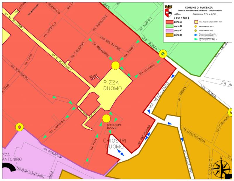“Nelle prossime settimane – aggiunge Bongiorni – sarà data ampia notizia di tutti gli aggiornamenti e verrà data attuazione anche alla divisione dei pass APU tra la zona di piazza Cavalli e quella di piazza Duomo: la linea di confine, quasi certamente, sarà la direttrice via Felice Frasi – via San Francesco. In ogni caso, ribadisco che le persone aventi diritto non devono preoccuparsi o attivarsi in alcun modo; il sito Internet del Comune è in aggiornamento con tutte le informazioni utili, così come resta a disposizione per ulteriori chiarimenti, o per la necessità di pass quotidiani, l’ufficio Ztl che risponde allo 0523-1798367 o alla mail ztl@comune.piacenza.it“.