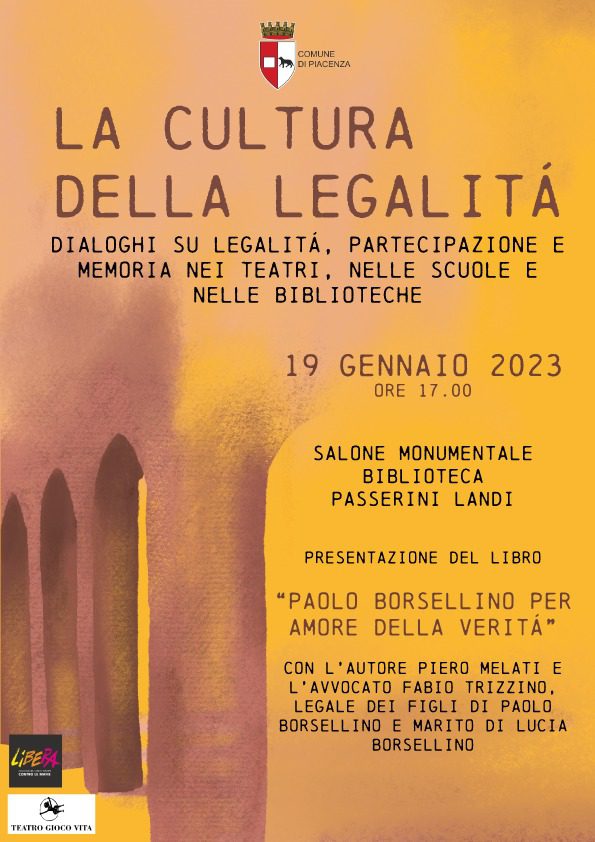 Dell’importante arresto se ne parlerà nell’appuntamento della serie “LA CULTURA DELLA LEGALITÁ” in programma alla Biblioteca Passerini Landi giovedì 19 gennaio 2023. Nell’evento presso il Salone Monumentale è prevista la presentazione del libro “PAOLO BORSELLINO PER AMORE DELLA VERITÁ. Con le parole di Lucia, Manfredi e Fiammetta Borsellino” (Sperling & Kupfer) con l’autore Piero Melati e l’avvocato Fabio Trizzino, legale dei figli di Paolo Borsellino e marito di Lucia Borsellino.