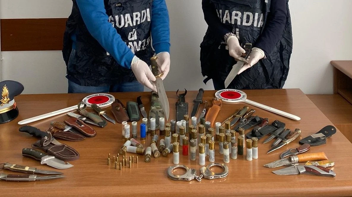 Accanto alle numerose armi bianche, i finanzieri hanno rinvenuto anche munizioni pronte all’uso, consistenti in cartucce da caccia a pallettoni e proiettili per pistola.