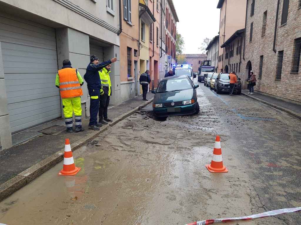 Asfalto cede per il maltempo in via San Bartolomeo, tecnici Iren al lavoro. Le forti piogge degli ultimi giorni stanno causando problemi anche nel centro di Piacenza dove si è aperta una voragine nell’area di Porta Borghetto. Sul posto presente anche la Polizia Municipale di Piacenza.