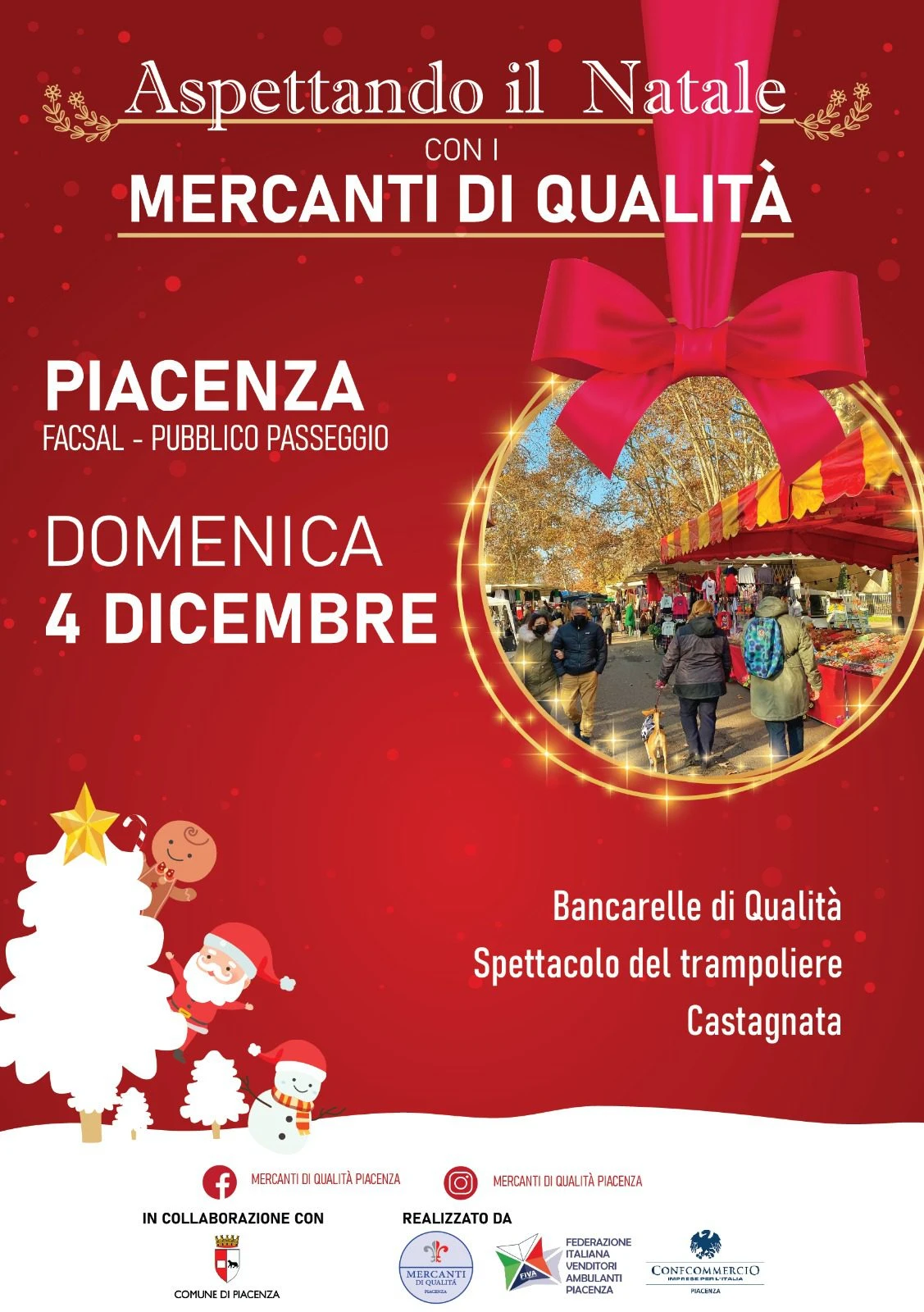 “Aspettando il Natale” è l’iniziativa organizzata dai Mercanti di Qualità in collaborazione con il Comune di Piacenza prevista per domenica 4 dicembre.